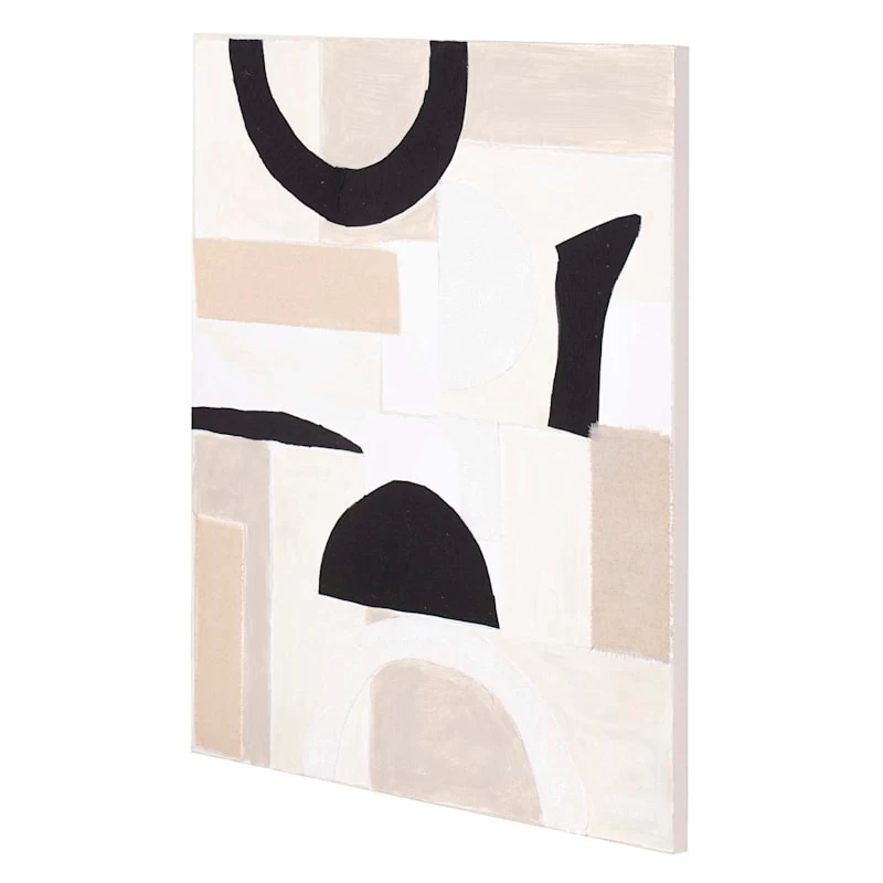 They say beauty is in the eye of the beholder. Art is too. Add a little character to any room in your home with our 31x39in. geometric canvas wall art. The possibilities are endless with this white, black, tan and ivory multi wall decor. A multicolor block and dome motif creates visual interest against a visually interesting backdrop. Hang this wall decor to make a bold statement and to add a touch of personality to your home decor.