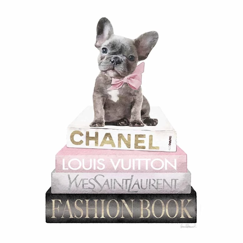 Fashion Bulldog Bookstack With Foil Canvas Wall Art, 12×16