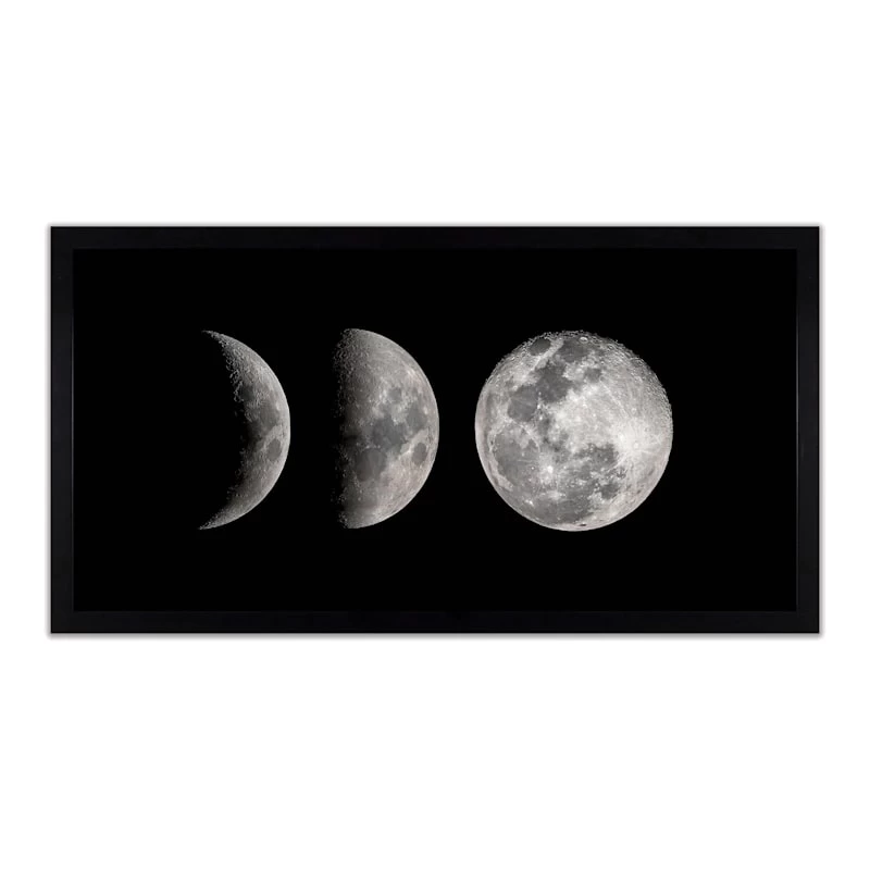 Moon phase decor is always stylish! This minimalist framed art shows three moon phases: full, half, and crescent. This beautiful black and white art can make any space a little dreamier. The print is fully framed and comes with protective glass. Hang this conversation piece to see which friends and family know the names of the moon phases. Finally, your inner lunar goddess can enjoy night sky-inspired modern framed art, making your space more perfect than ever!