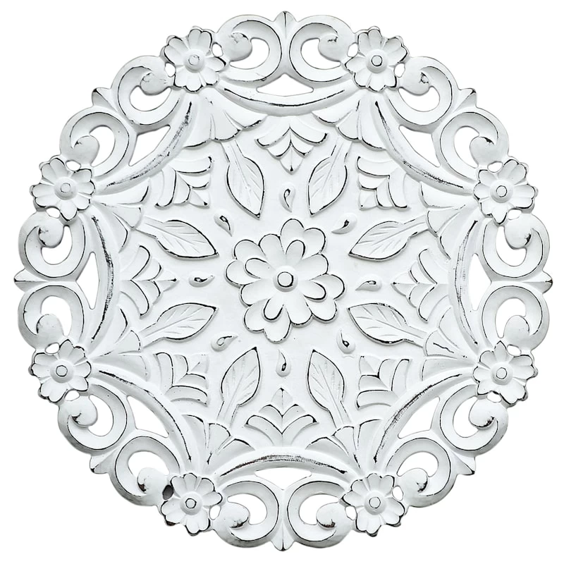 Hand Carved White Wood Ornate Panel Decor, 16"