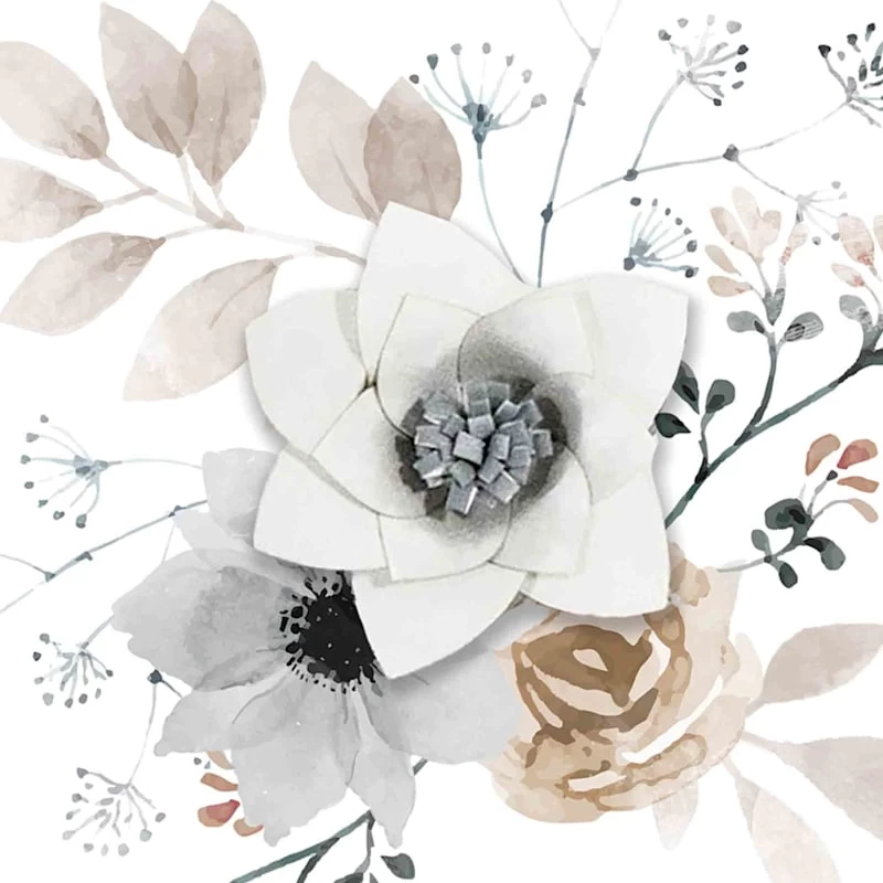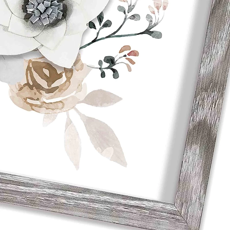 Honeybloom Glass Framed 3D Grey Floral Watercolor Wall Art, 11"