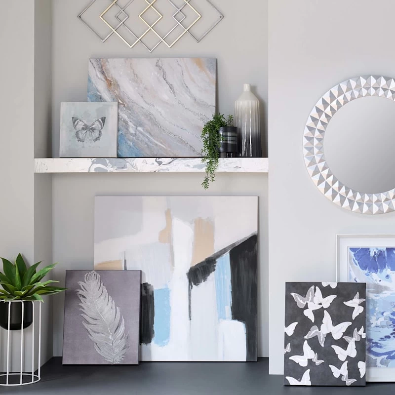 Laila Ali brings the mindset of a world-champion athlete and passion for healthy living to create a modern lifestyle collection with serious style only found At Home. They say beauty is in the eye of the beholder. Art is too. Add a little character to any room in your home with our 16x20in. Black and Gold Butterflies canvas wall art. The possibilities are endless with this black, ivory, grey and gold multi wall decor. A neutral and metallic butterfly flutter motif creates visual interest against a visually interesting backdrop. Hang this wall decor to make a bold statement and to add a touch of personality to your home decor.