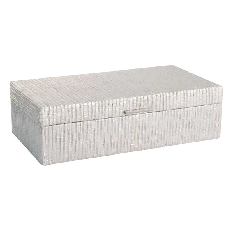 Laila Ali brings the mindset of a world-champion athlete and passion for healthy living to create a modern lifestyle collection with serious style found only At Home. Whether used solely as a decorative piece or to organize your bedroom dresser, or display as a conversation centerpiece, this 13x7in. oblong decorative seagrass box lends some on-trend glam design to any room. Featuring a rippled metallic finish, this clever little box can go from room to room with decorative ease.