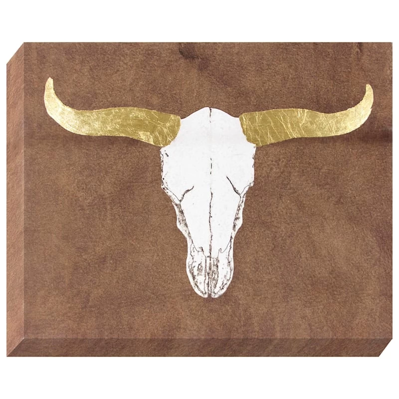 They say beauty is in the eye of the beholder. Art is too. Add a little character to any room in your home with our 20x16in. Longhorn Skull canvas wall art. The possibilities are endless with this brown, white, and gold multi wall decor. A graphic longhorn motif creates visual interest against a visually interesting backdrop. Hang this wall decor to make a bold statement and to add a touch of personality to your home decor.