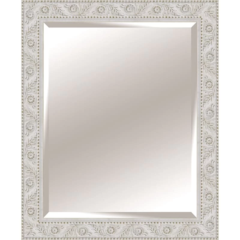 Solid Wood Floral Antique White Wall Mirror, 28×34