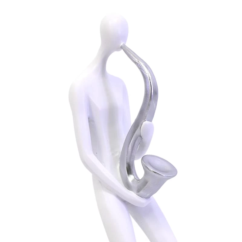 White & Silver Saxophone Player Figurine, 12"