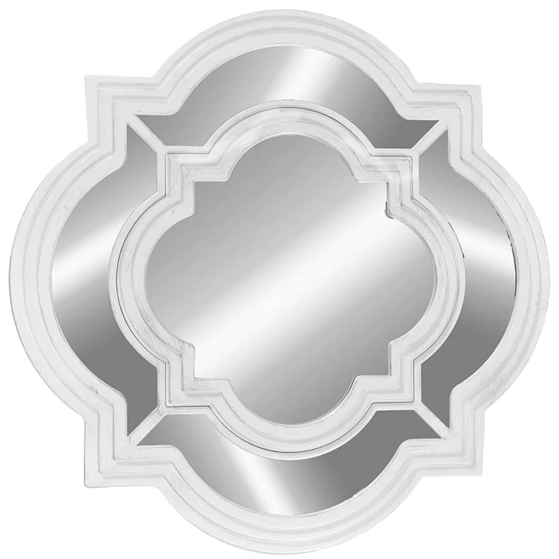 Mirrors just add a touch of glam anywhere they’re placed, and our 20×20 white double quatrefoil mirror is no exception. Whether you’re looking at one last glimpse before you leave the house, or just brighten up your living spaces, adding a mirror like this one is a great option for a useful, decorative accent in your home. Reflect on this, our white double quatrefoil mirror is a gleaming touch for any living space. And since mirrors have the added bonus of reflecting light, this piece, wall mounted or leaning is sure to make a living room or bedroom feel even larger.