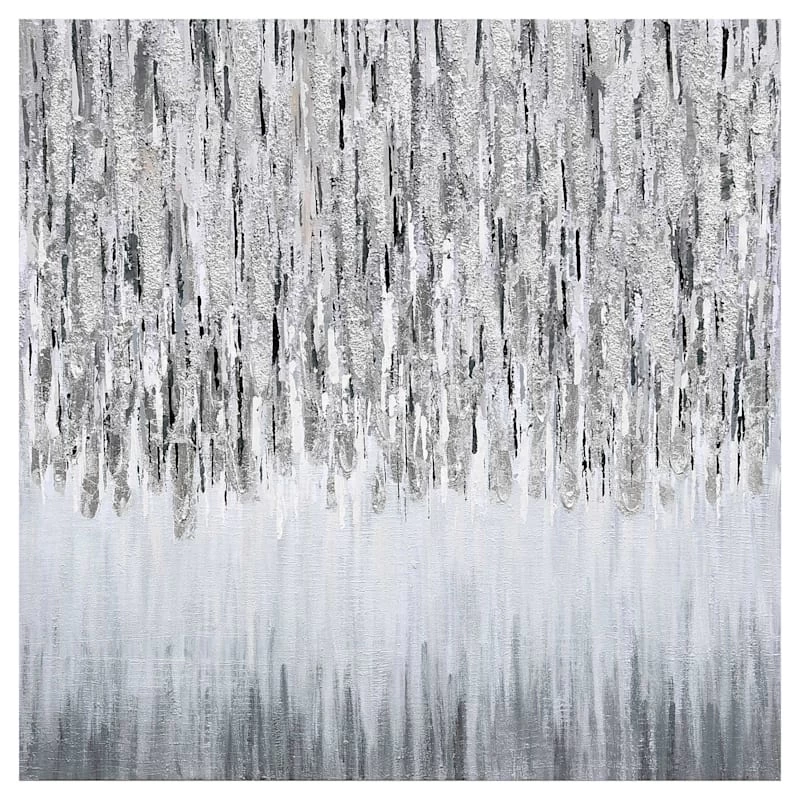 They say beauty is in the eye of the beholder. Art is too. Add a little character to any room in your home with our 39in. Winter Rain embellished canvas wall art. The possibilities are endless with this black, white and grey and silver multi wall decor. A multicolor abstract metallic motif creates visual interest against a visually interesting backdrop. Hang this wall decor to make a bold statement and to add a touch of personality to your home decor.